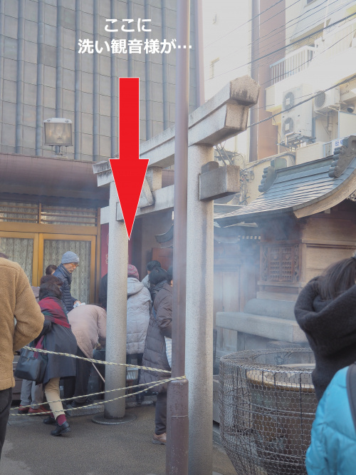 こちらが昼間は人に埋もれてしまっていた洗い観音様。